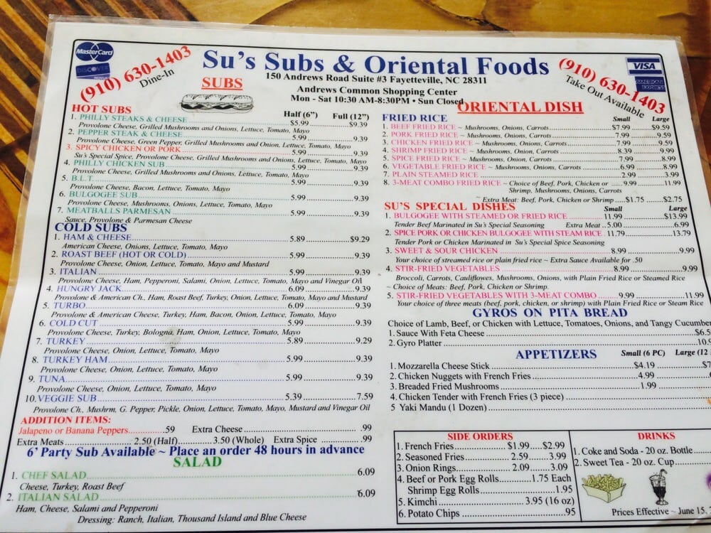 Welcome to Su's Subs & Oriental Food, a culinary gem located at 150 Andrews Rd, Fayetteville, NC. This vibrant eatery marries the best of subs and oriental cuisine, offering a diverse and delightful menu that is sure to please every palate.